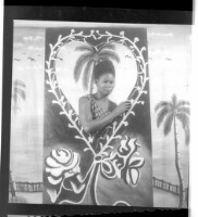 2642. EAP449/2/9/403 Reference (shelfmark): EAP449/2/9/403 Title: A woman standing behind a heart-shaped frame in the studio. Collection Area: Endangered Archives Programme Languages: Not applicable Date Range: 2nd half od the 20th century Extent: 1 TIFF image