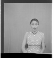 2647. EAP449/2/10/118 Reference (shelfmark): EAP449/2/10/118 Title: A woman wearing a dress standing face-forward in the studio. Collection Area: Endangered Archives Programme Languages: Not applicable Date Range: 2nd half od the 20th century Extent: 1 TIFF image