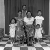 262. EAP054/1/46/329 Reference (shelfmark): EAP054/1/46/329 Title: Recreational photograph [c 1984 - 1985] Scope & Content: Six people: woman sitting on a stool and a younger woman with her children, 3 girls and a boy. Format of original: 59mm x 59mm plastic negative Collection Area: Endangered Archives Programme Languages: Not applicable Date Range: 1984-1985 Extent: 1 TIFF image
