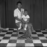 263. EAP054/1/46/333 Reference (shelfmark): EAP054/1/46/333 Title: Recreational photograph [c 1984 - 1985] Scope & Content: Women from Mbouda sitting on a stool, a baby boy on her lap. Format of original: 59mm x 59mm plastic negative Collection Area: Endangered Archives Programme Languages: Not applicable Date Range: 1984-1985 Extent: 1 TIFF image