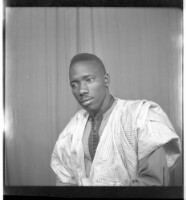 2955. EAP449/2/33/1210 Reference (shelfmark): EAP449/2/33/1210 Title: A man wearing a boubou facing forward in the studio. Collection Area: Endangered Archives Programme Languages: Not applicable Date Range: 2nd half od the 20th century Extent: 1 TIFF image