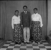 25. EAP054/1/22/55 Reference (shelfmark): EAP054/1/22/55 Title: Recreational photograph [c 1990] Scope & Content: Man standing between 2 women standing in matching outifts Format of original: 58mm x 59mm plastic negative Collection Area: Endangered Archives Programme Languages: Not applicable Date Range: c 1990 Extent: 1 TIFF image