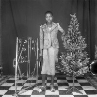 25. EAP054/1/163/71 Reference (shelfmark): EAP054/1/163/71 Title: Recreational photograph [c 1983] Scope & Content: Girl standing between iron grillwork and plastic tree Format of original: 59mm x 59mm plastic negative Collection Area: Endangered Archives Programme Languages: Not applicable Date Range: c 1983 Extent: 1 TIFF image