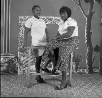 302. EAP054/1/81/197 Reference (shelfmark): EAP054/1/81/197 Title: Recreational photograph [c 1977] Scope & Content: 2 women half-sitting, resting on a bench Format of original: 57mm x 59mm plastic negative Collection Area: Endangered Archives Programme Languages: Not applicable Date Range: c 1977 Extent: 1 TIFF image