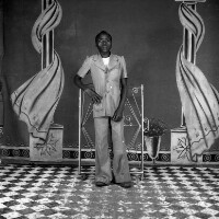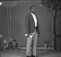 303. EAP054/1/81/212 Reference (shelfmark): EAP054/1/81/212 Title: Recreational photograph [c 1977] Scope & Content: Man from Mbouda standing with a rolled up piece of paper in one hand Format of original: 55mm x 59mm plastic negative Collection Area: Endangered Archives Programme Languages: Not applicable Date Range: c 1977 Extent: 1 TIFF image