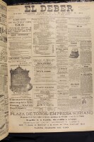 317. EAP726/1/1/19/316 Reference (shelfmark): EAP726/1/1/19/316 Title: El Deber [14 Nov 1908] Collection Area: Endangered Archives Programme Languages: Spanish Date Range: 14 Nov 1908 Extent: 4 Tiff images