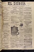 350. EAP726/1/1/19/349 Reference (shelfmark): EAP726/1/1/19/349 Title: El Deber [17 Dec 1908] Collection Area: Endangered Archives Programme Languages: Spanish Date Range: 17 Dec 1908 Extent: 4 Tiff images