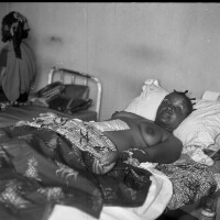 36. EAP054/1/36/82 Reference (shelfmark): EAP054/1/36/82 Title: Recreational photograph [c 1987] Scope & Content: Woman in hospital bed with bandaged stomach Format of original: 59mm x 59mm plastic negative Collection Area: Endangered Archives Programme Languages: Not applicable Date Range: c 1987 Extent: 1 TIFF image