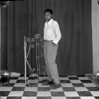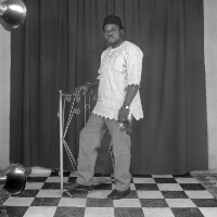 38. EAP054/1/46/75 Reference (shelfmark): EAP054/1/46/75 Title: Recreational photograph [c 1984 - 1985] Scope & Content: Man standing, right foot on iron grillwork which he is holding with right hand, in white "boubou" shirt. Format of original: 59mm x 59mm plastic negative Collection Area: Endangered Archives Programme Languages: Not applicable Date Range: 1984-1985 Extent: 1 TIFF image