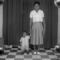 39. EAP054/1/46/84 Reference (shelfmark): EAP054/1/46/84 Title: Recreational photograph [c 1984 - 1985] Scope & Content: Woman, right hand holding her young sons hand, left hand holding a purse, smiling. Format of original: 59mm x 59mm plastic negative Collection Area: Endangered Archives Programme Languages: Not applicable Date Range: 1984-1985 Extent: 1 TIFF image