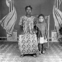 Woman from Bamessingue sitting, and her daughter, both with plaits, woman in full length dress ("kaba"), daughter in white skirt and darker shirt. Format of original: 59mm x 59mm plastic negative