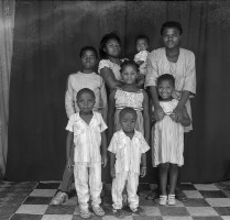 39. EAP054/1/171/268 Reference (shelfmark): EAP054/1/171/268 Title: Recreational photograph [c 1986] Scope & Content: Couple standing, woman holding baby with 5 children in front Format of original: 57mm x 59mm plastic negative Collection Area: Endangered Archives Programme Languages: Not applicable Date Range: c 1986 Extent: 1 TIFF image