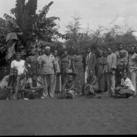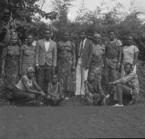 47. EAP054/1/97/69 Reference (shelfmark): EAP054/1/97/69 Title: Recreational photograph [c 1984] Scope & Content: 12 people, 8 standing and 4 crouching in a courtyard Format of original: 57mm x 59mm plastic negative Collection Area: Endangered Archives Programme Languages: Not applicable Date Range: c 1984 Extent: 1 TIFF image