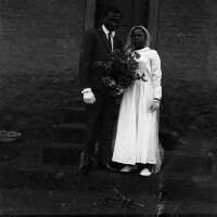 45. EAP054/1/108/3 Reference (shelfmark): EAP054/1/108/3 Title: Recreational photograph [c 1970-c 1995] Scope & Content: Bridal couple at steps of church; wedding Format of original: 54mm x 56mm plastic negative Collection Area: Endangered Archives Programme Languages: Not applicable Date Range: c 1970-c 1995 Extent: 1 TIFF image