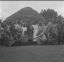 43. EAP054/1/108/148 Reference (shelfmark): EAP054/1/108/148 Title: Recreational photograph [c 1970-c 1995] Scope & Content: Bridal couple amidst large wedding party, thatched building and fence behind. Format of original: 54mm x 59mm plastic negative Collection Area: Endangered Archives Programme Languages: Not applicable Date Range: c 1970-c 1995 Extent: 1 TIFF image