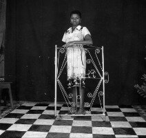 46. EAP054/1/173/93 Reference (shelfmark): EAP054/1/173/93 Title: Recreational photograph [c 1989] Scope & Content: Girl standing behind iron grillwork Format of original: 56mm x 59mm plastic negative Collection Area: Endangered Archives Programme Languages: Not applicable Date Range: c 1989 Extent: 1 TIFF image