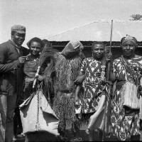 558. EAP054/1/81/359 Reference (shelfmark): EAP054/1/81/359 Title: Recreational photograph [c 1977] Scope & Content: Group of six men, one with a horse tail fly whisk, in traditional dress for dances at funeral celebrations Format of original: 59mm x 59mm plastic negative Collection Area: Endangered Archives Programme Languages: Not applicable Date Range: c 1977 Extent: 1 TIFF image