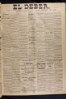55. EAP726/1/1/19/53 Reference (shelfmark): EAP726/1/1/19/53 Title: El Deber [22 Feb 1908] Collection Area: Endangered Archives Programme Languages: Spanish Date Range: 22 Feb 1908 Extent: 4 Tiff images
