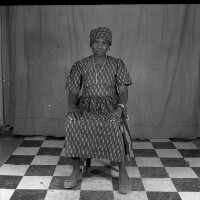 55. EAP054/1/50/79 Reference (shelfmark): EAP054/1/50/79 Title: Recreational photograph [c 1980] Scope & Content: Woman sitting, feet apart, hands on knees. Format of original: 59mm x 59mm plastic negative Collection Area: Endangered Archives Programme Languages: Not applicable Date Range: c 1980 Extent: 1 TIFF image