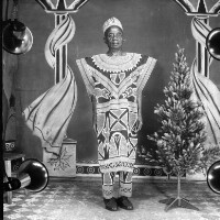 56. EAP054/1/50/92 Reference (shelfmark): EAP054/1/50/92 Title: Recreational photograph [c 1980] Scope & Content: Man standing in traditional dress, plastic tree on his left. Format of original: 59mm x 59mm plastic negative Collection Area: Endangered Archives Programme Languages: Not applicable Date Range: c 1980 Extent: 1 TIFF image
