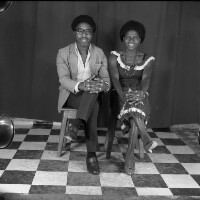 51. EAP054/1/169/100 Reference (shelfmark): EAP054/1/169/100 Title: Recreational photograph [c 1985] Scope & Content: Couple from Mbouda sitting both with legs crossed Format of original: 59mm x 59mm plastic negative Collection Area: Endangered Archives Programme Languages: Not applicable Date Range: c 1985 Extent: 1 TIFF image