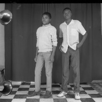 60. EAP054/1/169/157 Reference (shelfmark): EAP054/1/169/157 Title: Recreational photograph [c 1985] Scope & Content: Standing, 2 young men from Bamedjo Format of original: 59mm x 59mm plastic negative Collection Area: Endangered Archives Programme Languages: Not applicable Date Range: c 1985 Extent: 1 TIFF image