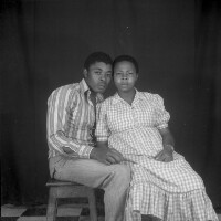 54. EAP054/1/173/138 Reference (shelfmark): EAP054/1/173/138 Title: Recreational photograph [c 1989] Scope & Content: Young couple sitting with crossed legs decorated gourd in front Format of original: 58mm x 59mm plastic negative Collection Area: Endangered Archives Programme Languages: Not applicable Date Range: c 1989 Extent: 1 TIFF image