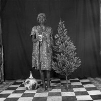 57. EAP054/1/173/158 Reference (shelfmark): EAP054/1/173/158 Title: Recreational photograph [c 1989] Scope & Content: Woman standing holding drink can, between painted gourd and tree Format of original: 59mm x 59mm plastic negative Collection Area: Endangered Archives Programme Languages: Not applicable Date Range: c 1989 Extent: 1 TIFF image