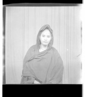 57. EAP449/2/14/208 Reference (shelfmark): EAP449/2/14/208 Title: A Muslim woman wearing a head scarf sitting face-forward in the studio. Collection Area: Endangered Archives Programme Languages: Not applicable Date Range: 2nd half od the 20th century Extent: 1 TIFF image