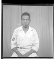 58. EAP449/2/14/221 Reference (shelfmark): EAP449/2/14/221 Title: A man wearing a shirt and pants sitting face-forward in the studio. Collection Area: Endangered Archives Programme Languages: Not applicable Date Range: 2nd half od the 20th century Extent: 1 TIFF image