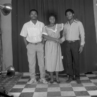 69. EAP054/1/46/178 Reference (shelfmark): EAP054/1/46/178 Title: Recreational photograph [c 1984 - 1985] Scope & Content: Family group Format of original: 59mm x 59mm plastic negative Collection Area: Endangered Archives Programme Languages: Not applicable Date Range: 1984-1985 Extent: 1 TIFF image