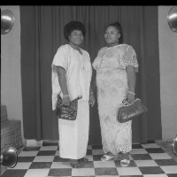 62. EAP054/1/46/153 Reference (shelfmark): EAP054/1/46/153 Title: Recreational photograph [c 1984 - 1985] Scope & Content: 2 women standing, each holding a dark handbag. Format of original: 59mm x 59mm plastic negative Collection Area: Endangered Archives Programme Languages: Not applicable Date Range: 1984-1985 Extent: 1 TIFF image