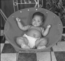 64. EAP054/1/46/159 Reference (shelfmark): EAP054/1/46/159 Title: Recreational photograph [c 1984 - 1985] Scope & Content: Baby in an armchair, torso nude. Format of original: 56mm x 59mm plastic negative Collection Area: Endangered Archives Programme Languages: Not applicable Date Range: 1984-1985 Extent: 1 TIFF image