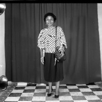 65. EAP054/1/46/160 Reference (shelfmark): EAP054/1/46/160 Title: Recreational photograph [c 1984 - 1985] Scope & Content: Woman standing, in dark skirt and striped blouse, dark handbag on her shoulder. Format of original: 59mm x 59mm plastic negative Collection Area: Endangered Archives Programme Languages: Not applicable Date Range: 1984-1985 Extent: 1 TIFF image