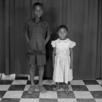 67. EAP054/1/46/172 Reference (shelfmark): EAP054/1/46/172 Title: Recreational photograph [c 1984 - 1985] Scope & Content: 2 children: boy, hands in pockets of his short-sleeved shirt, and little girl in white dress. Format of original: 59mm x 59mm plastic negative Collection Area: Endangered Archives Programme Languages: Not applicable Date Range: 1984-1985 Extent: 1 TIFF image