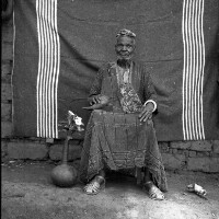 64. EAP054/1/147/37 Reference (shelfmark): EAP054/1/147/37 Title: Recreational photograph [c 1970-c 1995] Scope & Content: Old man sitting, cow horn drinking vessel in right hand, peace plant in gourd by his right foot. Format of original: 59mm x 59mm plastic negative Collection Area: Endangered Archives Programme Languages: Not applicable Date Range: c 1970-c 1995 Extent: 1 TIFF image