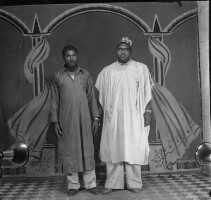 61. EAP054/1/159/292 Reference (shelfmark): EAP054/1/159/292 Title: Recreational photograph [c 1980] Scope & Content: 2 men standing in 'gandoura' gowns Format of original: 59mm x 59mm plastic negative Collection Area: Endangered Archives Programme Languages: Not applicable Date Range: c 1980 Extent: 1 TIFF image