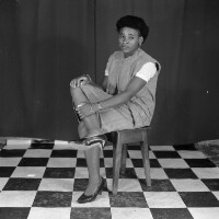 65. EAP054/1/169/176 Reference (shelfmark): EAP054/1/169/176 Title: Recreational photograph [c 1985] Scope & Content: Young man from Bagam, standing with crossed legs and arms. Format of original: 57mm x 59mm plastic negative Collection Area: Endangered Archives Programme Languages: Not applicable Date Range: c 1985 Extent: 1 TIFF image