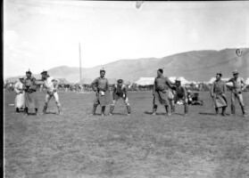 7022. EAP264/1/8/12/41 Reference (shelfmark): EAP264/1/8/12/41 Title: Wrestlers waiting for their challengers at Yarmag uring Naadam festivities [1930s] Collection Area: Endangered Archives Programme Languages: Not applicable Date Range: 1930s Extent: 1 TIFF image