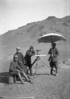 7026. EAP264/1/8/13/113 Reference (shelfmark): EAP264/1/8/13/113 Title: A foreign explorer (unknown) with his Mongolian staff out on the plain (location unknown) [1930s] Collection Area: Endangered Archives Programme Languages: Not applicable Date Range: 1930s Extent: 1 TIFF image