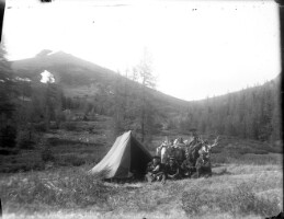 7025. EAP264/1/8/13/95 Reference (shelfmark): EAP264/1/8/13/95 Title: A foreign explorer in Khuvsgul taiga, Northern Mongoliawith his Mongolian guides [1920s] Collection Area: Endangered Archives Programme Languages: Not applicable Date Range: 1920s Extent: 1 TIFF image