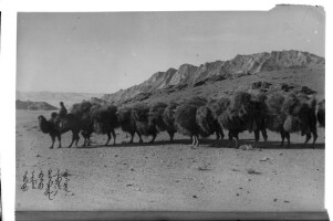 7032. EAP264/1/8/14/20 Reference (shelfmark): EAP264/1/8/14/20 Title: A camel caravan transporting hay, Khovd province [1930s] Collection Area: Endangered Archives Programme Languages: Not applicable Date Range: 1930s Extent: 1 TIFF image
