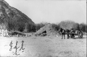 7031. EAP264/1/8/14/12 Reference (shelfmark): EAP264/1/8/14/12 Title: A man with donkey-drawn cart, Ulaanbaatar [1930s] Collection Area: Endangered Archives Programme Languages: Not applicable Date Range: 1930s Extent: 1 TIFF image