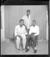 751. EAP449/2/6/797 Reference (shelfmark): EAP449/2/6/797 Title: Three men wearing shirts, two sitting in profile and one standing in profile behind in the studio. Collection Area: Endangered Archives Programme Languages: Not applicable Date Range: 2nd half od the 20th century Extent: 1 TIFF image