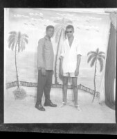 765. EAP449/2/6/723 Reference (shelfmark): EAP449/2/6/723 Title: Two men, one wearing shorts and the other wearing pants, standing in profile in the studio. Collection Area: Endangered Archives Programme Languages: Not applicable Date Range: 2nd half od the 20th century Extent: 1 TIFF image