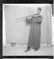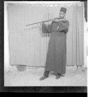 763. EAP449/2/6/857 Reference (shelfmark): EAP449/2/6/857 Title: A man wearing a boubou standing in profile with a mounted rifle in the studio. Collection Area: Endangered Archives Programme Languages: Not applicable Date Range: 2nd half od the 20th century Extent: 1 TIFF image