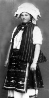 Description: a woman costume from Nikopol district (Northern Bulgaria). Date(s): Early 20th century. Creator(s): Unknown. Dimensions: 9 cm x 12 cm. Copy process: scanned