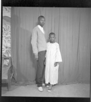 789. EAP449/2/6/537 Reference (shelfmark): EAP449/2/6/537 Title: A man standing in profile and a child wearing a boubou standing face-forward in the studio. Collection Area: Endangered Archives Programme Languages: Not applicable Date Range: 2nd half od the 20th century Extent: 1 TIFF image