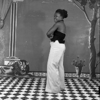 Wedding: bride and groom from Mbouda with their families in front of the Catholic Mission church in Mbouda, groom in dark jacket and bride in white dress. Format of original: 59mm x 59mm plastic negative