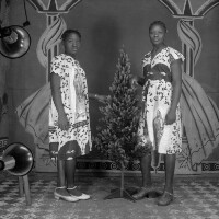 77. EAP054/1/134/116 Reference (shelfmark): EAP054/1/134/116 Title: Recreational photograph [c 1980] Scope & Content: 2 young women standing, plastic tree between them. Format of original: 59mm x 59mm plastic negative Collection Area: Endangered Archives Programme Languages: Not applicable Date Range: c 1980 Extent: 1 TIFF image
